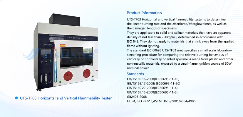Scope of Application: Primarily for plastic materials with a thickness of ≤13mm, this test evaluates the burning speed of the material when placed horizontally. This is the lowest level of flame retardancy in the UL94 standard.